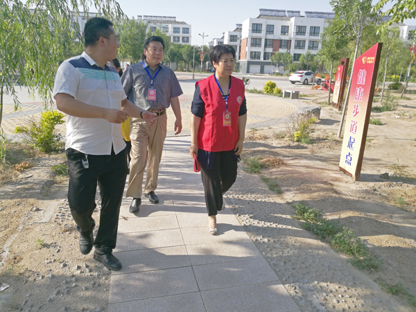 张文莲一行在惠丰社区博爱家园室外宣传区域、应急避险场所、博爱主题公园、博爱便民驿站、博爱讲堂、四点半学校等进行了实地察看,惠丰社区负责人对项目实施以来进展情况、存在的问题和下一步打算进行了详细说明。