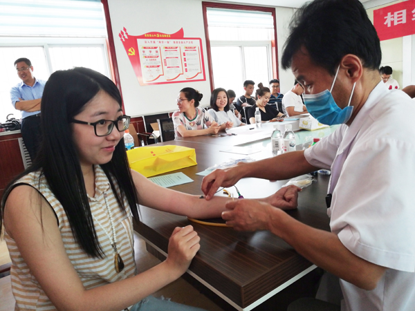 6月4日下午,365bet注册送36在联通公司开展造血干细胞捐献志愿者血样采集,17名青年伸出手臂,挽救生命,奉献爱心。